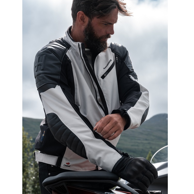 Halvarssons Solberg moottoripyörätakki, vaalean harmaa/musta